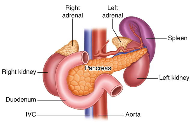 The solid organs within your abdomen – the Pancreas, Spleen, Liver, Adrenal Glands, and